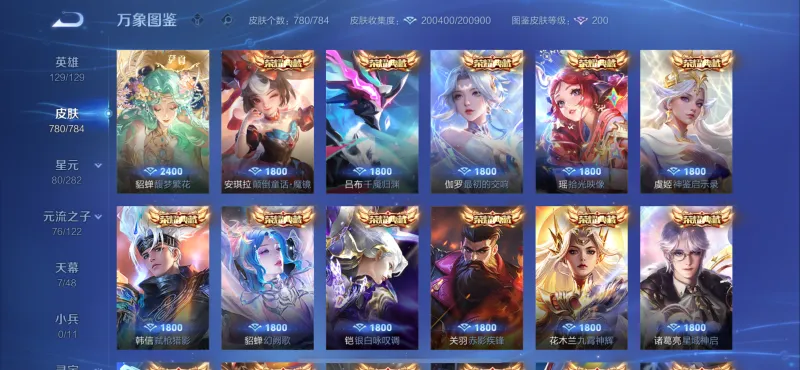 780皮,差1珍宝阁+3赛季皮。